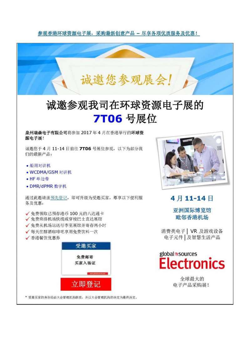 泉州瑞森電子有限公司誠(chéng)邀您參觀(guān)2017年4月環(huán)球資源電子展,攤位號(hào)7T06,20 ...
